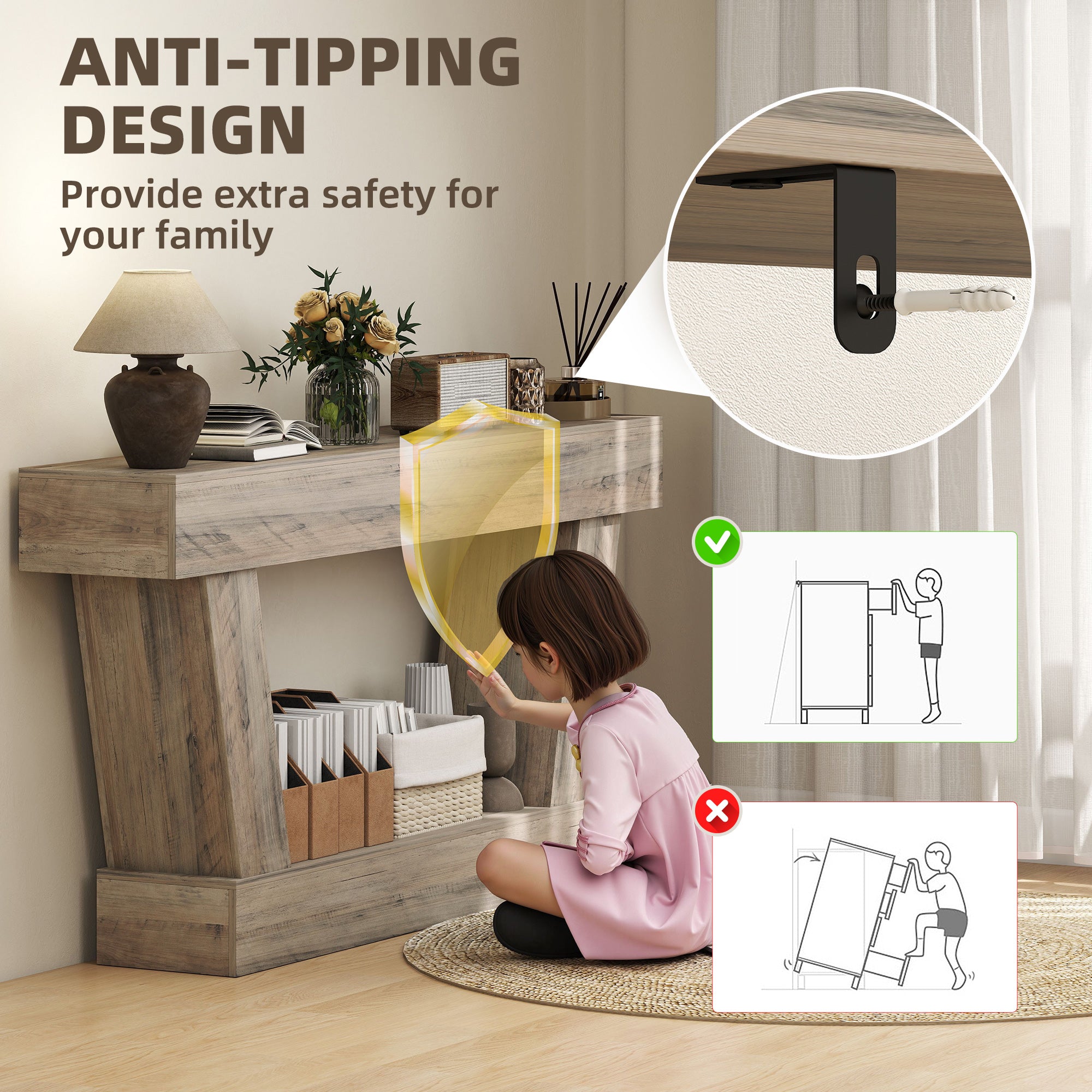 High-quality materials: Made from sturdy particleboard with a water-resistant melamine finish, this console table ensures durability and easy maintenance. Its anti-tip device enhances safety, allowing for reliable use in high-traffic areas.