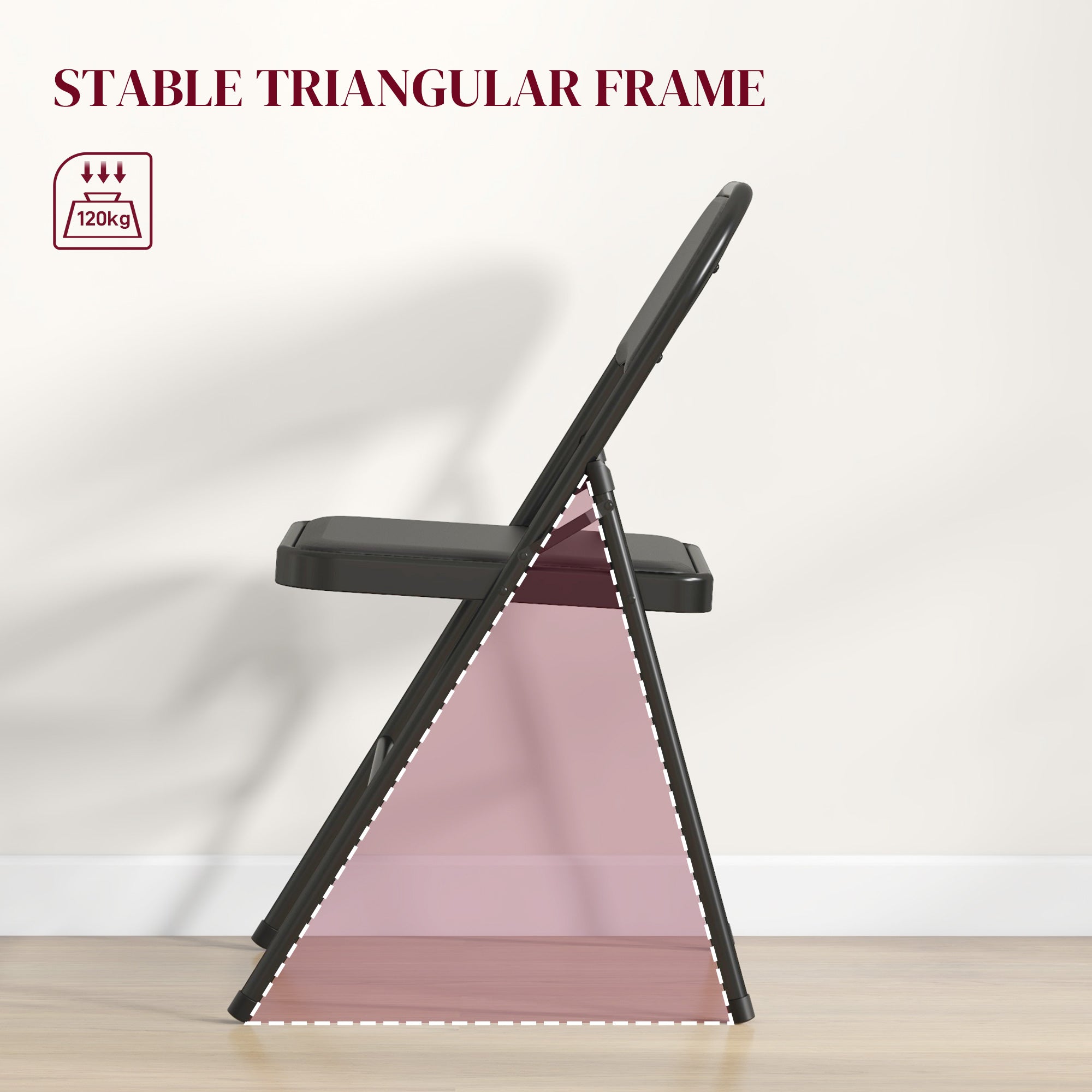 Comfort and design: These folding chairs offer a padded seat and comfortable backrest, both upholstered in faux leather for a pleasant feel and a modern look. Their open back and wide seat ensure optimal support.