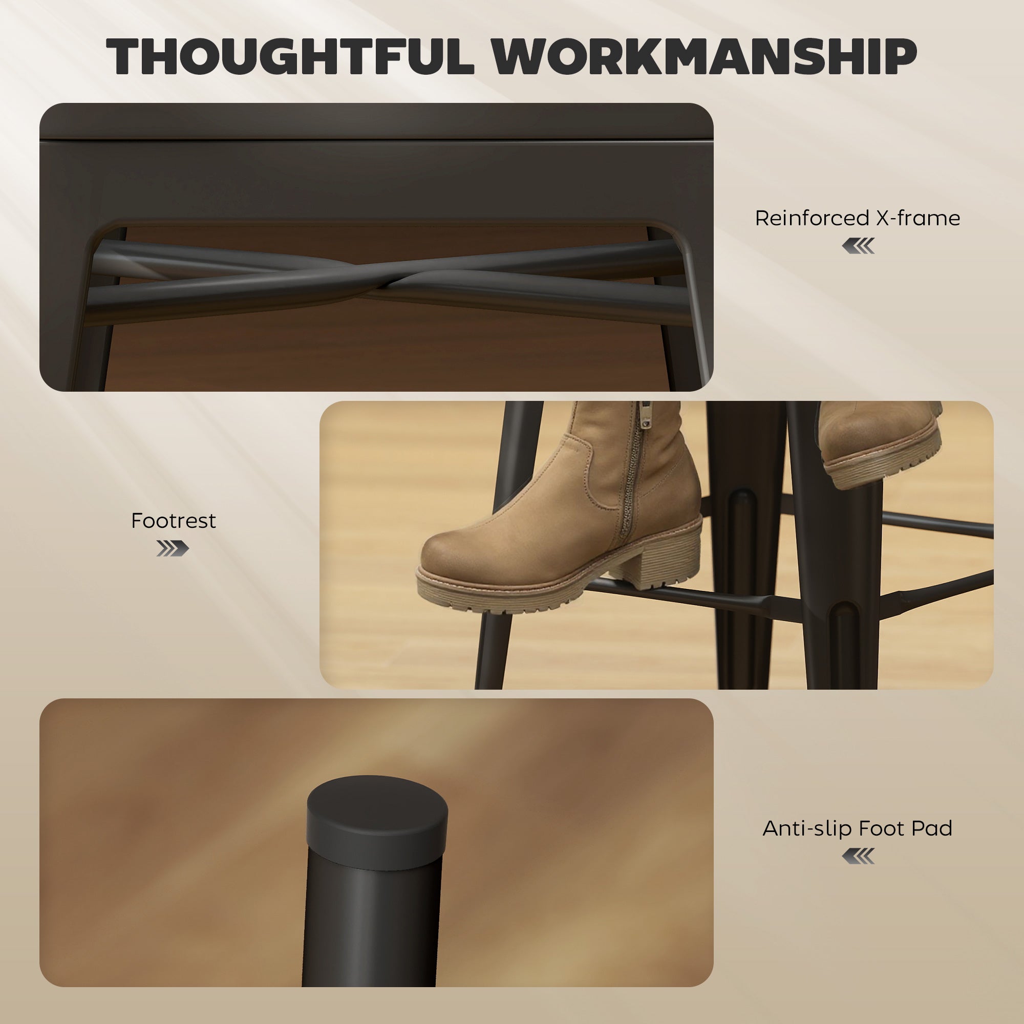 Industrial metal bar stools with removable backrest – Set of 4 (Black)