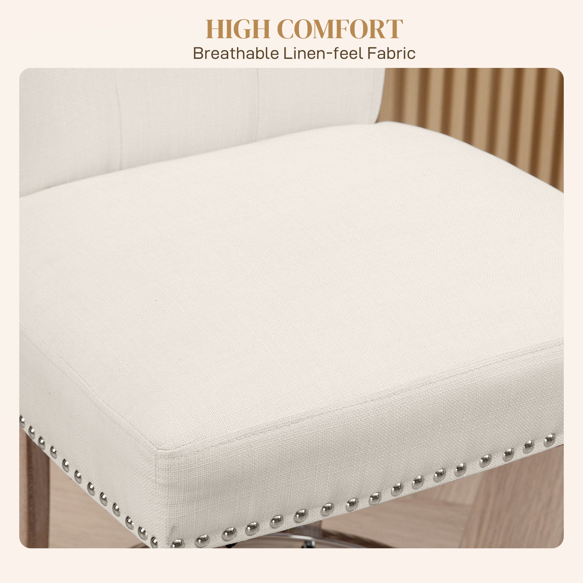 Comfort and design: These stools combine sophistication and modernity thanks to their creamy white linen-look upholstery and elegant button tufting. Their refined style instantly brightens up your interior, whether it's a kitchen island, a home bar, or a café area.