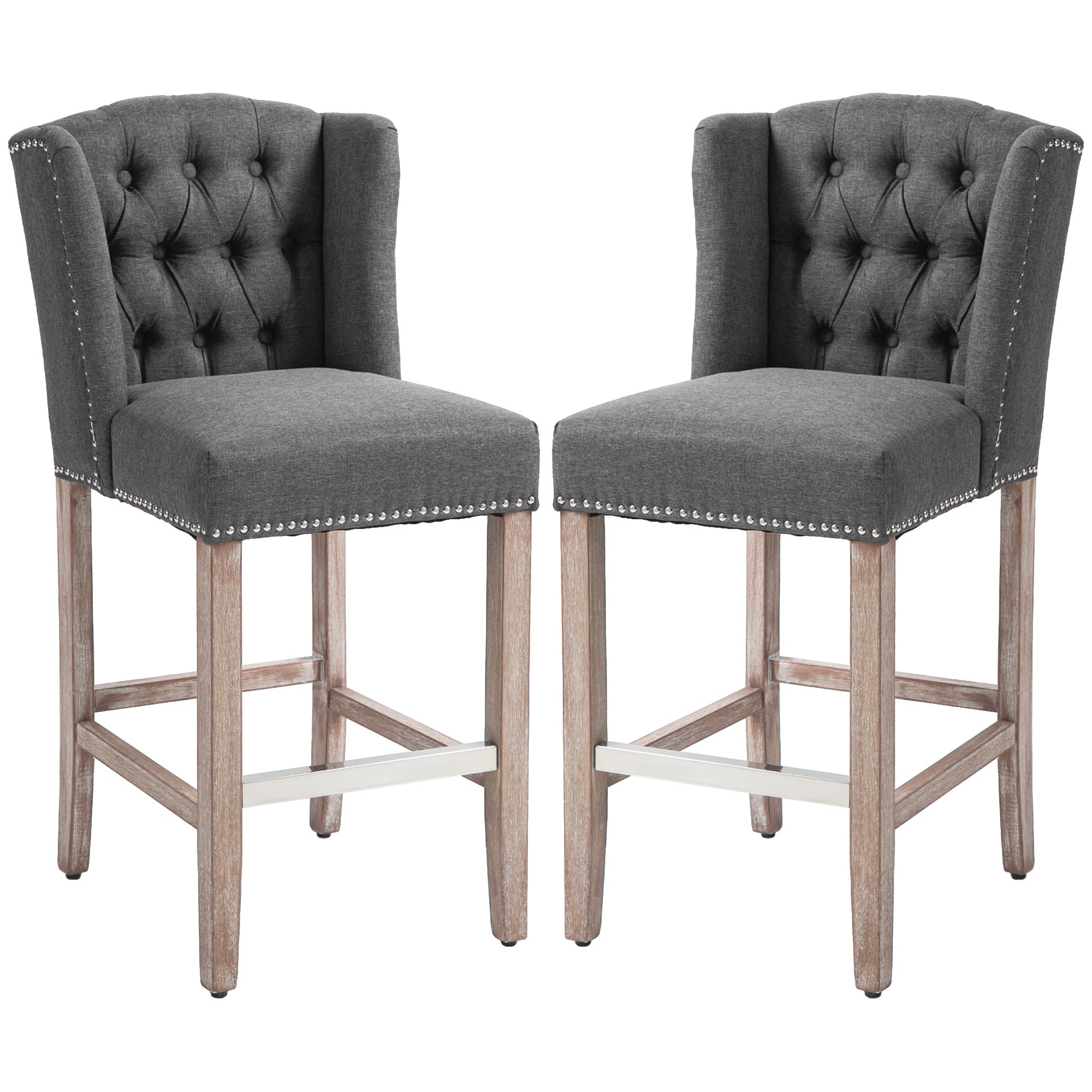 Linen-look fabric bar stools – set of 2 (dark grey)