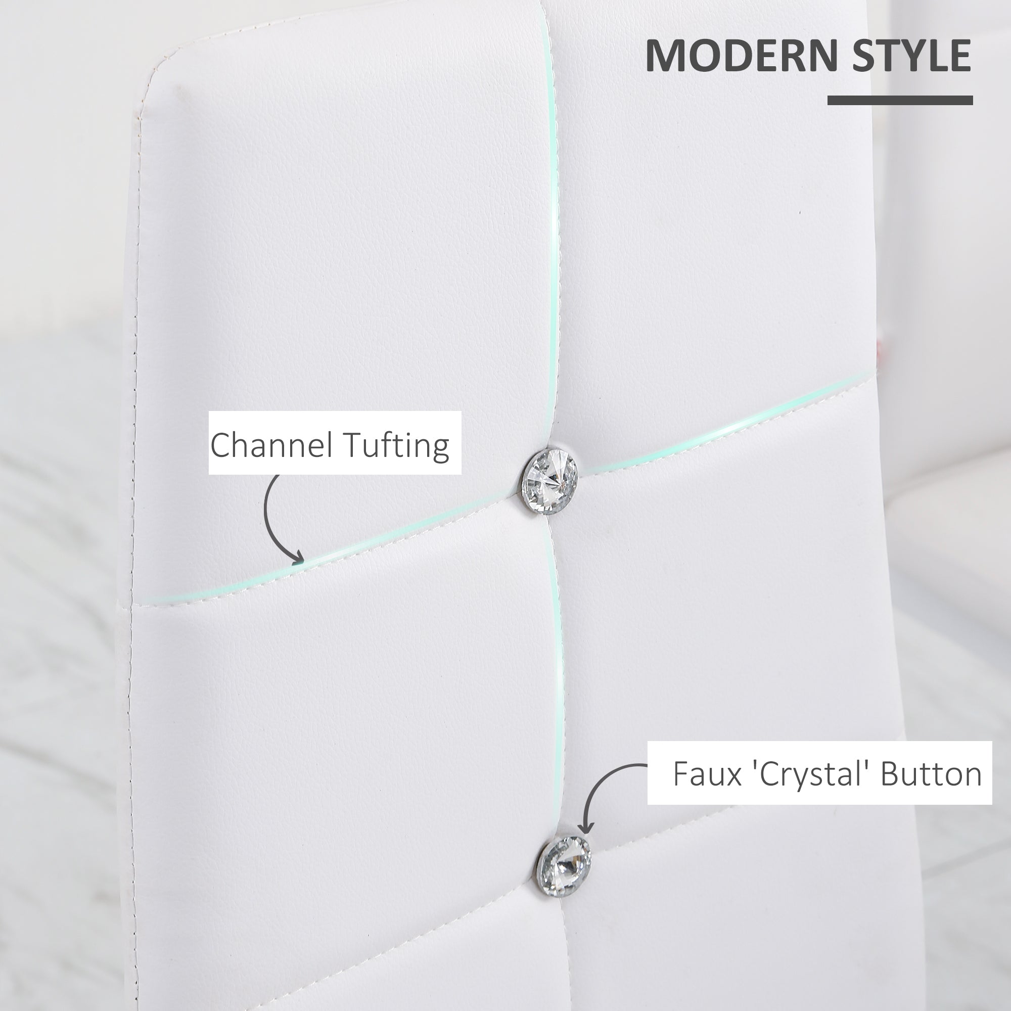 Comfort and design: These chairs, with their modern and minimalist style, instantly add a touch of elegance to your interior. Their high, tufted backrest with a crystal-like finish and their padded seat provide remarkable comfort for meals and social gatherings.