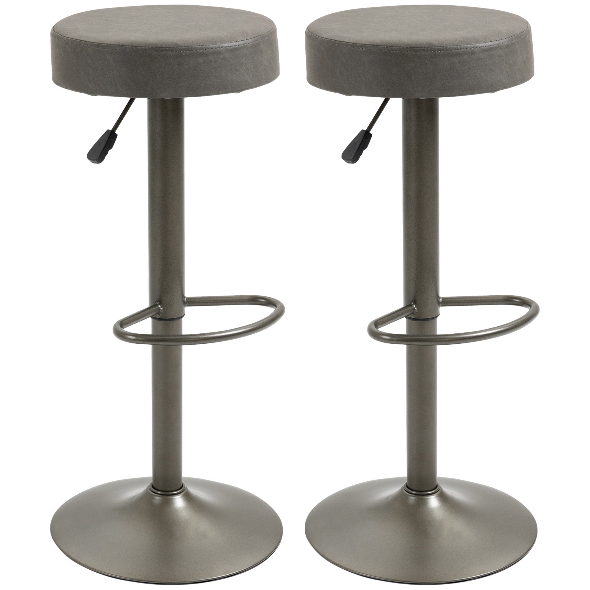 Adjustable PU leather bar stools with stable base – Set of 2 (Dark Grey)