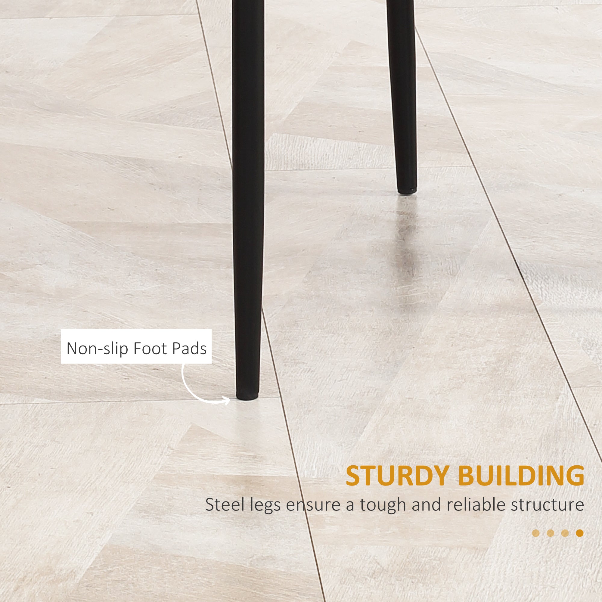 High-quality materials: The faux leather upholstery ensures easy maintenance and a pleasant feel. The powder-coated steel legs guarantee excellent stability, while the diamond-patterned tufting adds a refined touch.
