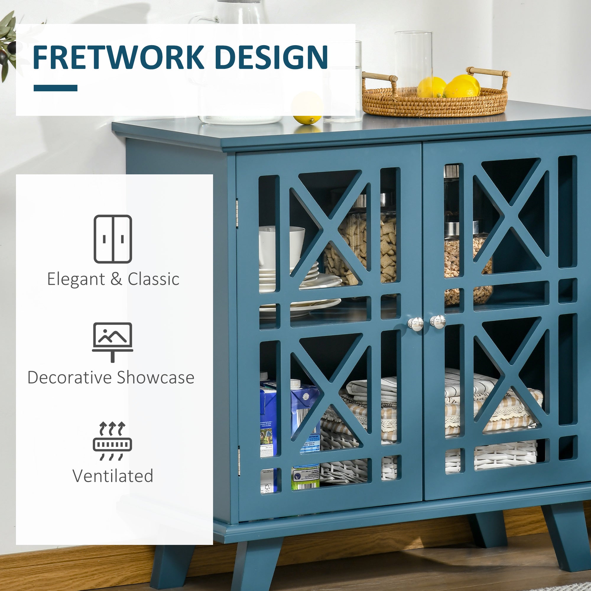 Decorative storage sideboard with openwork doors