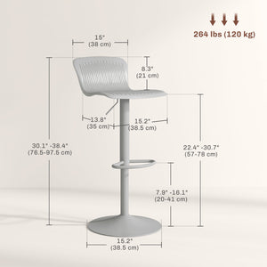 - Dimensions and Capacity: Each stool measures 15.2" W x 15.7" D x 30.1" -38.4"