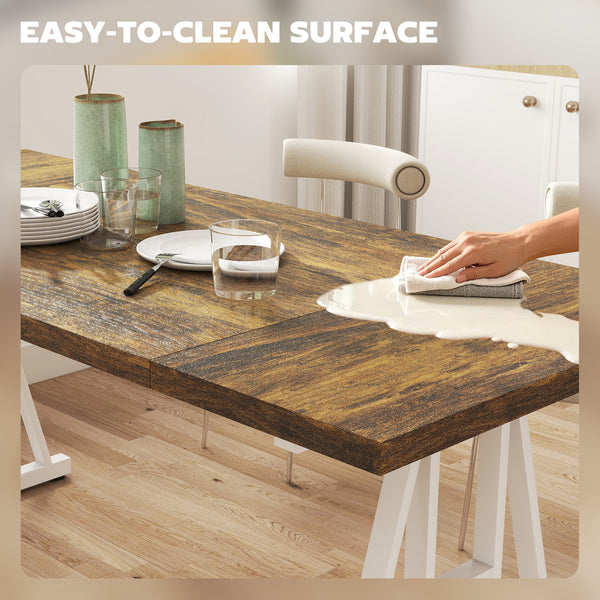 Bring warmth and style to your home: This farmhouse-style dining table combines a rich vintage brown top with a sleek white trestle base. Perfect for hosting family and friends, it becomes the focal point of your meals and social gatherings.