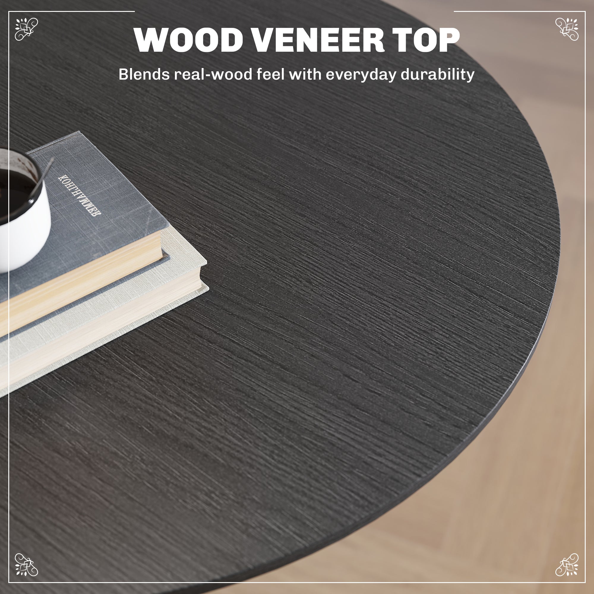- MDF tabletop with black wood veneer
