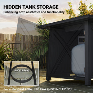 - Fire Pit Table: This propane fire pit set can be used as a dining table or a conversation table for meals and drinks. The square table, featuring adjustable legs and an embossed rattan pattern, adds functionality and elegance to your backyard.