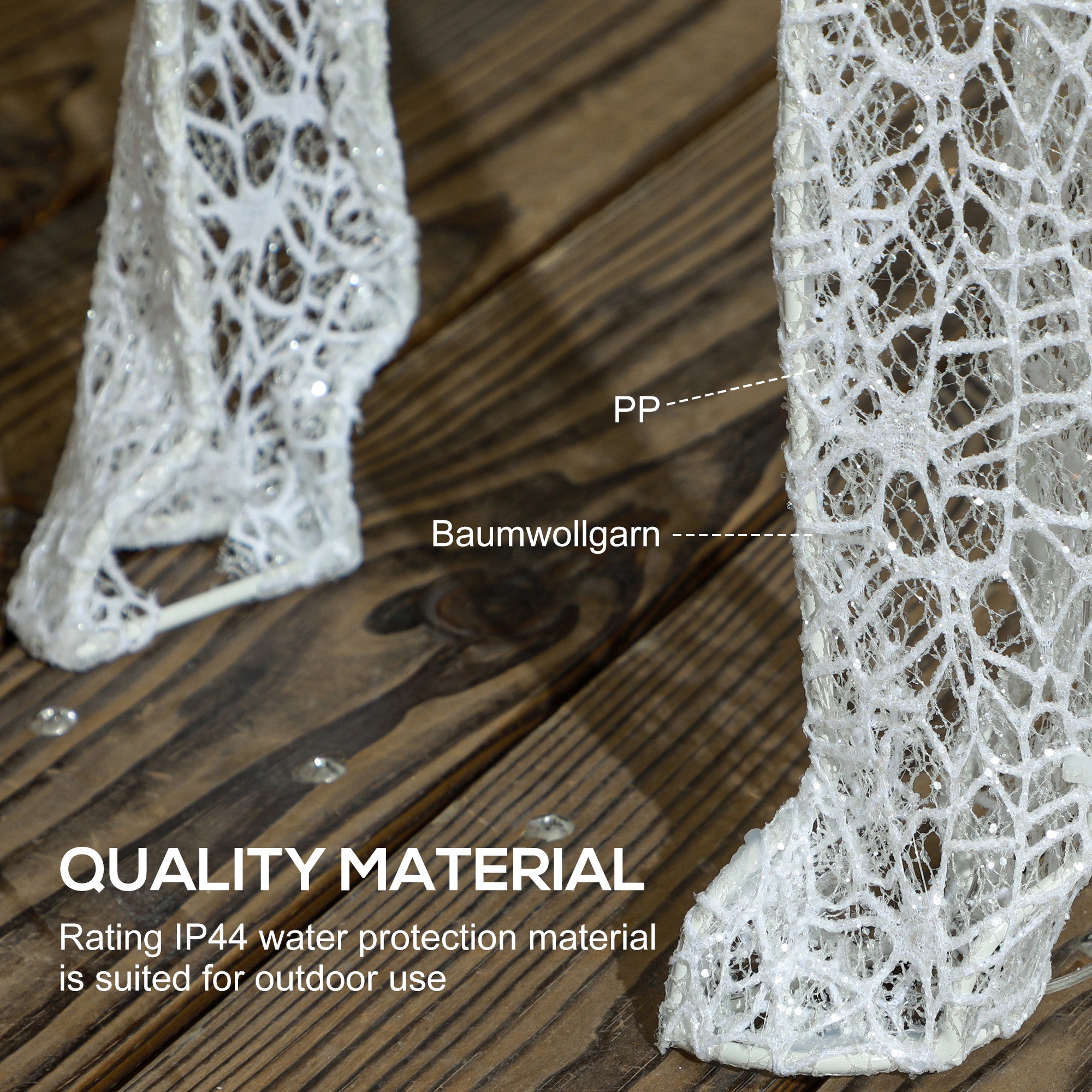 High-quality materials: Designed with a robust steel and PP structure, it is weather-resistant thanks to its IP44 rating. The included ground stakes ensure maximum stability, even outdoors. The low energy consumption of the LEDs guarantees long-lasting and safe lighting.