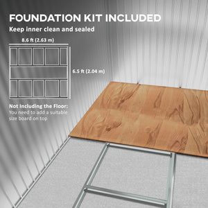 - Easy Assembly with Foundation Kit: Designed for DIY enthusiasts, the shed includes a foundation kit and pre-cut panels for simple assembly, ensuring a stable and uniform structure.