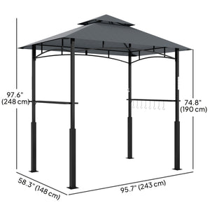 - Overall dimensions: 243 x 148 x 248 cm (L x W x H). Maximum weight capacity: 30 kg (shelf), 10 kg (hook). Assembly required. Note: Suitable for barbecues up to 150 cm wide. Please check dimensions before purchasing.