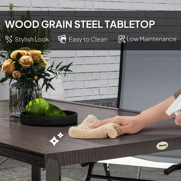 - Sturdy Structure: Constructed with a sturdy steel frame and coated with a powder-coated finish, this outdoor patio table is designed to withstand the outdoor elements and provide long-lasting durability.