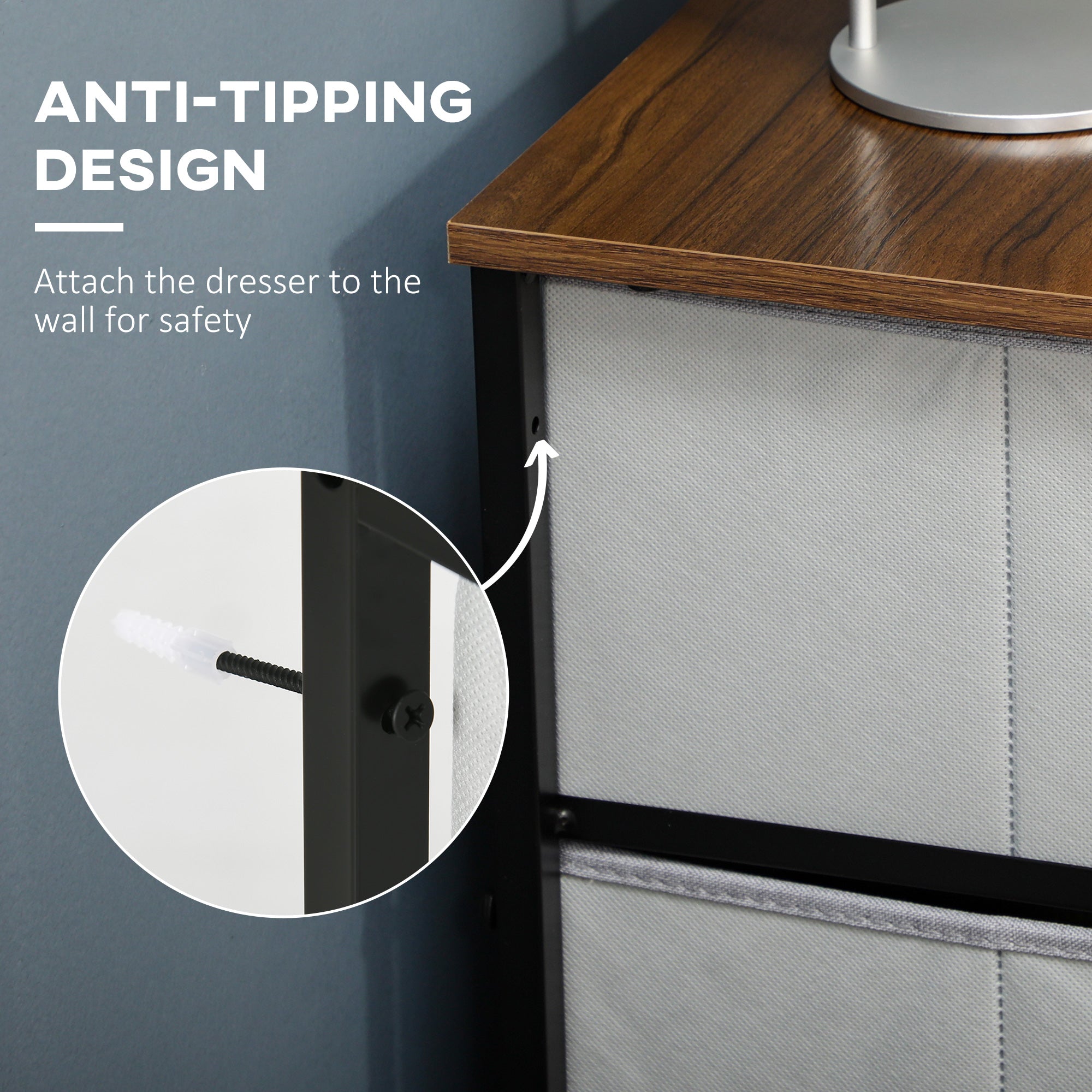High-quality materials: The powder-coated steel frame ensures strength and stability, while the MDF top provides a durable surface. The non-woven fabric drawers are lightweight and practical, and the adjustable feet compensate for uneven floors. The anti-tip device enhances safety for family use.