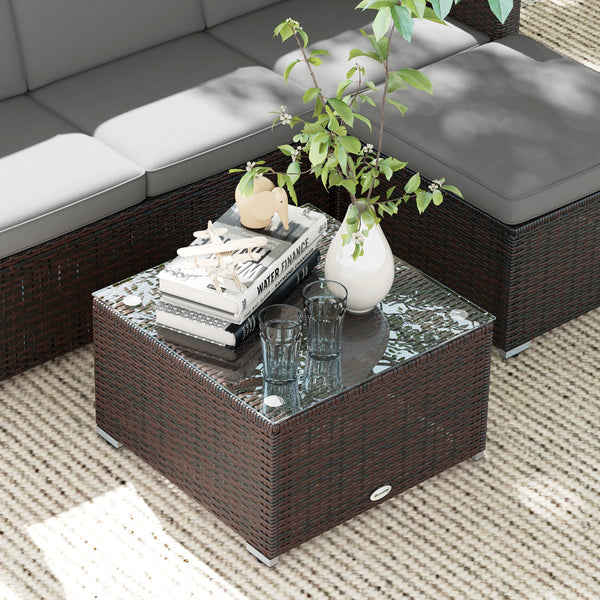 - Elegant Coffee Table: This rattan garden furniture set features a rattan coffee table and a glass top for its natural beauty and excellent water resistance. It makes a stylish and practical centerpiece for your corner living room. It is ideal for holding drinks, coffee, and even green plants or flowers.