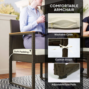 - 3-Piece Outdoor Bistro Set: This elegant garden furniture set creates a peaceful haven! Comprising 2 armchairs and a matching side table, it's ideal for enjoying a morning coffee, an evening cocktail, or a relaxing moment in your garden, balcony, or patio.
