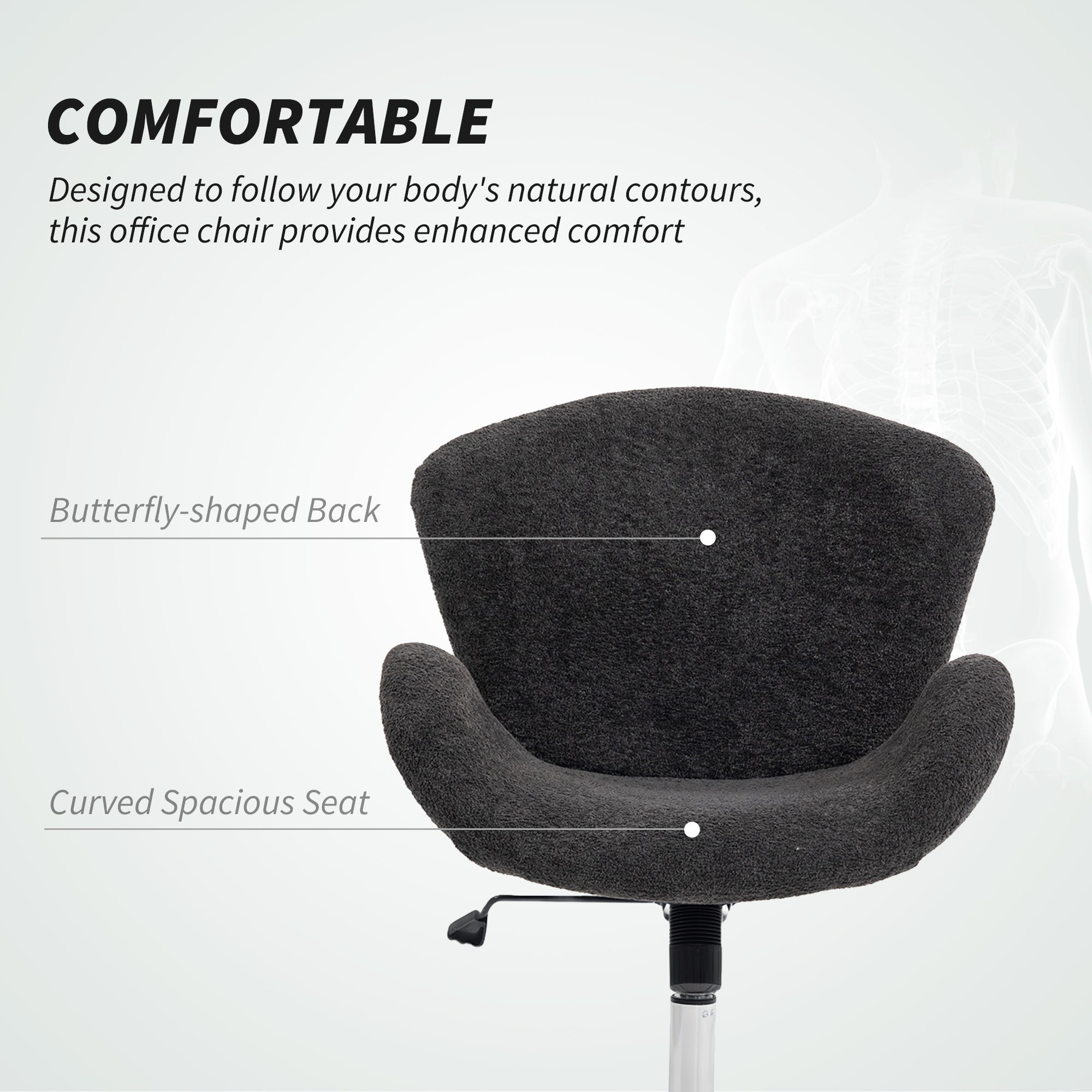 Swivel office chair in velvet with butterfly back and circular base – Dark Grey