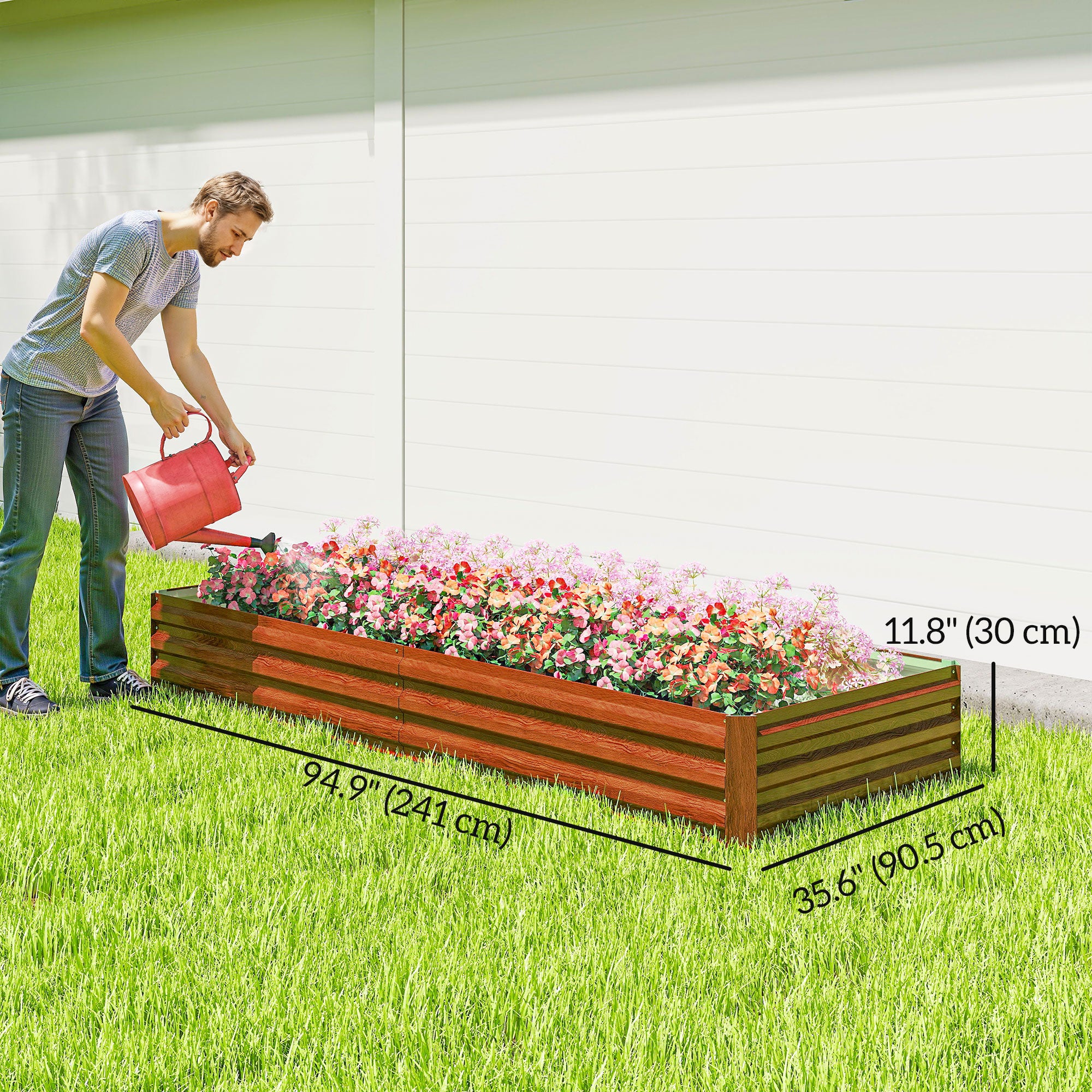 - Planting area: 93.7" L x 34.6" W x 11.8" H (238 x 88 x 30 cm)