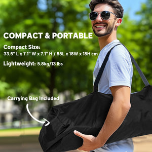 - Compact and Portable: Simplifying travel, this folding camping rocking chair features an easy folding system, reducing to a compact size (33.5" L x 7.1" W x 7.1" H/85 x 18 x 18 cm) with a lightweight 13 lb/5.8 kg frame, and comes with a carrying bag.