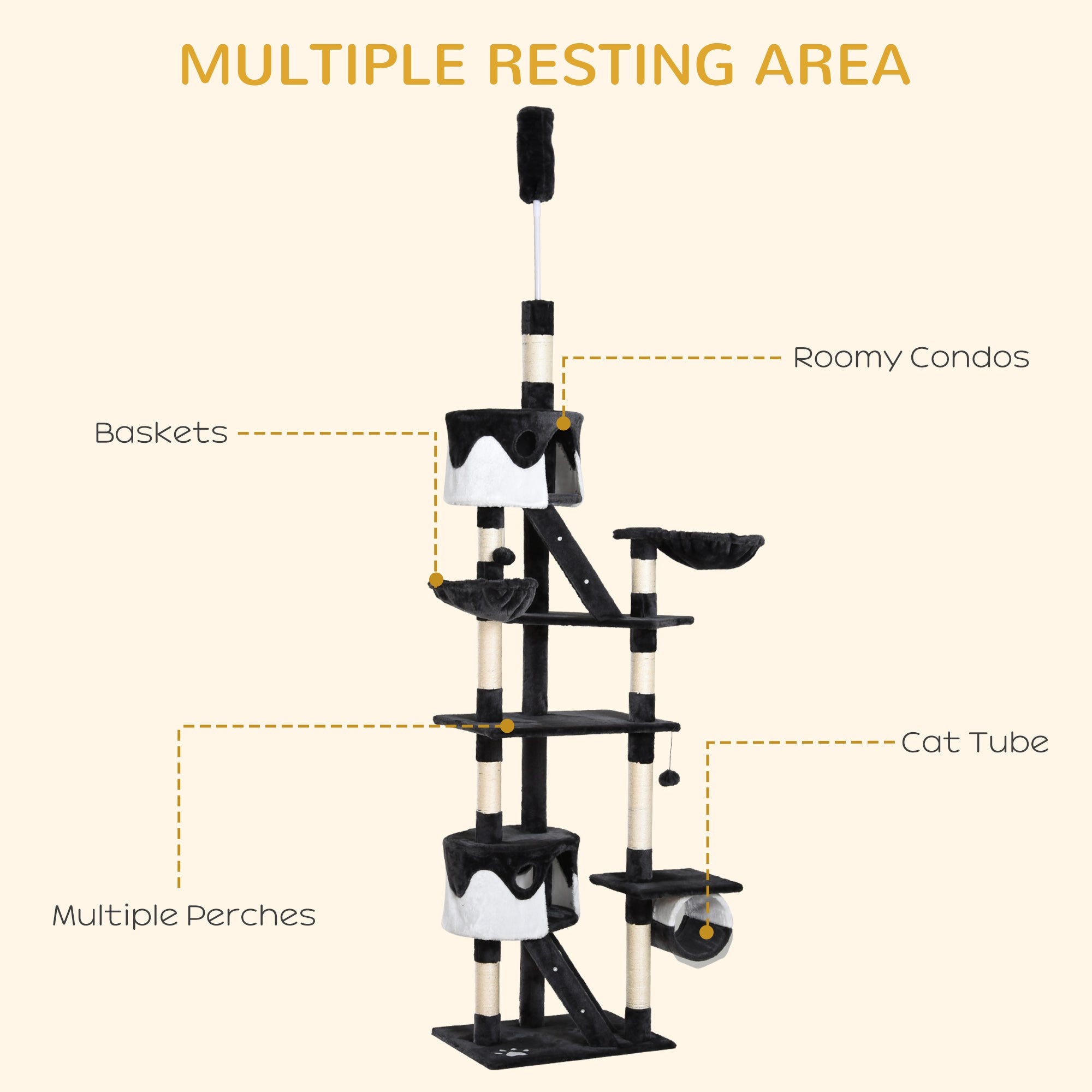 Large Dark Gray Floor-to-Ceiling Cat Tower: Multi-Level Cat Tree with Condos, Baskets & Scratching Posts