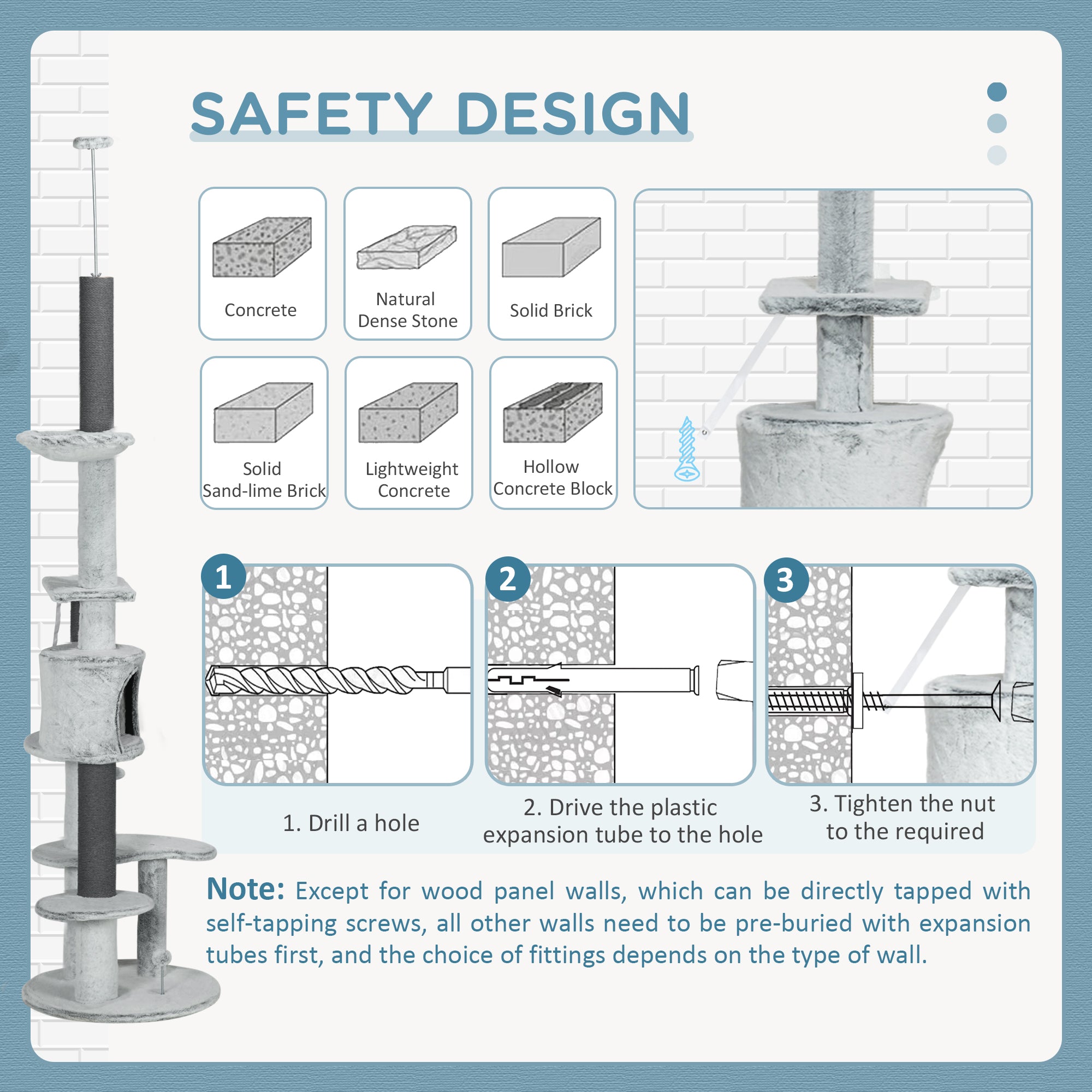 Comfort and design: Transform your home into a true cat paradise with this floor-to-ceiling gray cat tree. Its elegant vertical design offers a complete play area without cluttering your room. Thanks to its soft plush covering, your companion will enjoy exceptional comfort while having fun and resting.