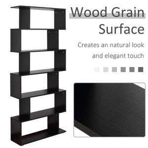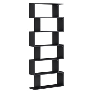 Modern S-Shaped Bookcase - 6 Tier Black Storage