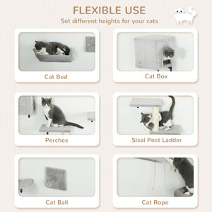 - Cat Wall Climber: Give your pet an elevated place to play, jump, and relax. Includes multi-level perches, a sisal ladder, cozy baskets, a litter box, a ball, and a rope. Suitable for small spaces, you can simply use your wall to install it.