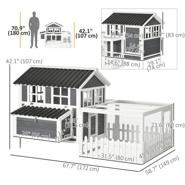 Large Size: Provide a spacious habitat for your poultry! This chicken coop with nest box features 11 sq ft (1 m²) in the run and 7 sq ft (0.61 m²) in the main house, providing enough space for 3 to 4 chickens to stay active and happy.