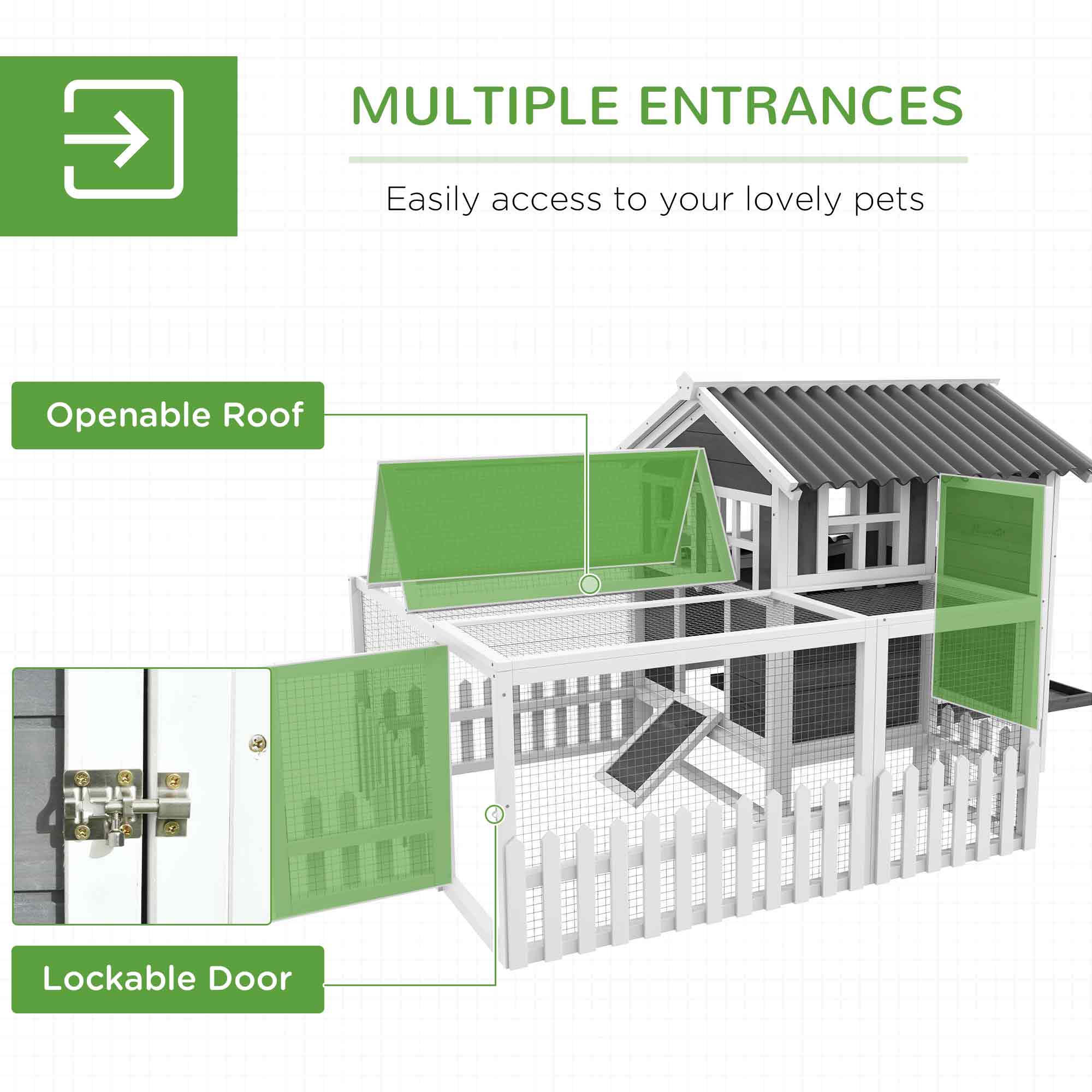 Weather Protection: Designed to withstand the seasons, this elevated chicken coop features a durable plastic roof and painted fir wood walls. The wire mesh effectively protects your chickens from predators, while still allowing them to enjoy the outdoors.