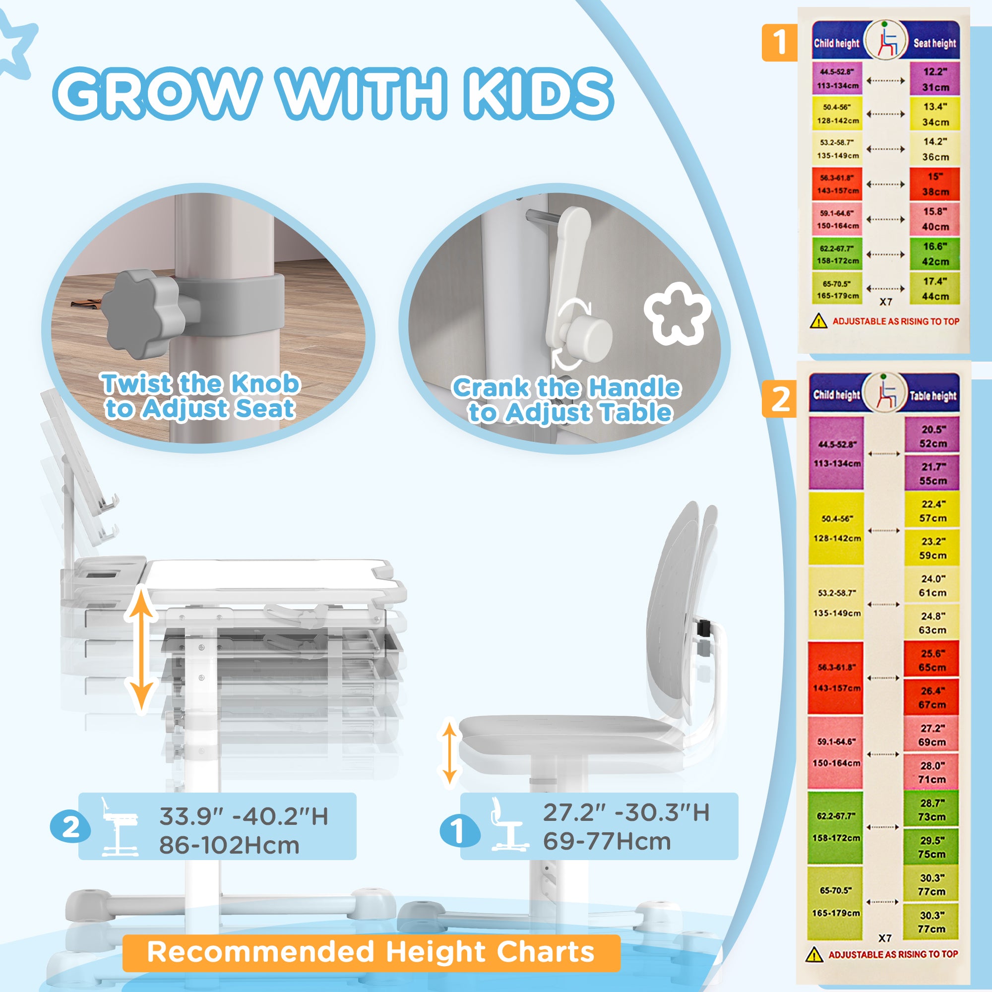Adjustable Kids Desk and Chair Set (Grey and White)
