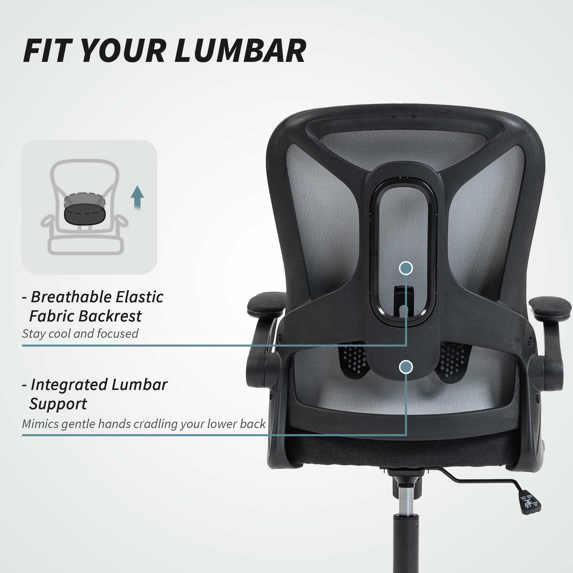Ergonomic office chair with adjustable lumbar support and flip-up armrests