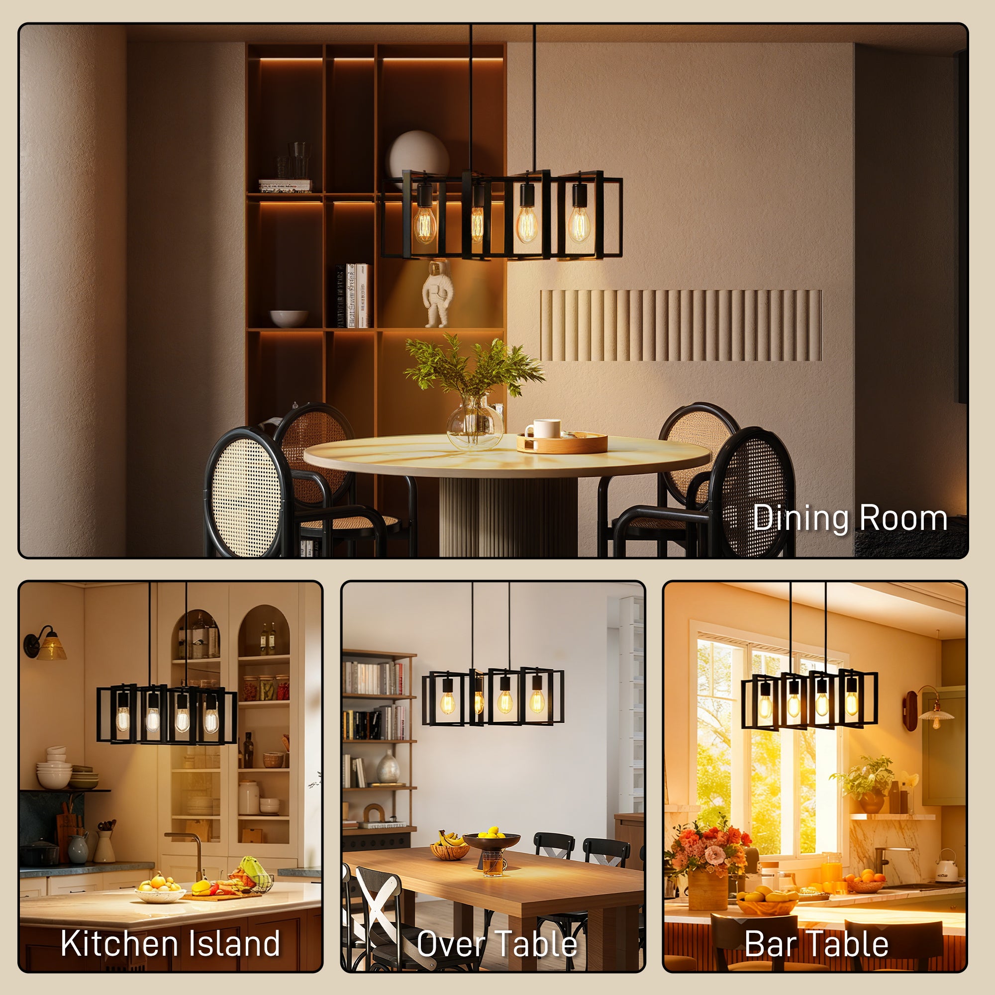 Struggling with lighting that's either too harsh or too dim for your changing needs? This creates a space that feels impersonal and inflexible. The HOMCOM pendant light transforms your home with its farmhouse charm. Customize its rotatable wooden frames for a playful touch and adjust the brightness for any occasion. This kitchen island lighting provides bright illumination for meal prep and a warm glow for cozy dinners, creating the right ambiance every time.