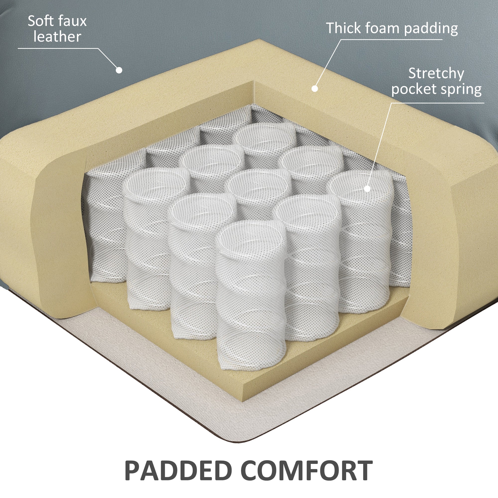Durable materials and easy maintenance: Its soft-touch PU leather upholstery is easy to clean, ideal for everyday use. The pocket spring system with S-springs and elastic bands ensures stable, sturdy and comfortable seating over time.