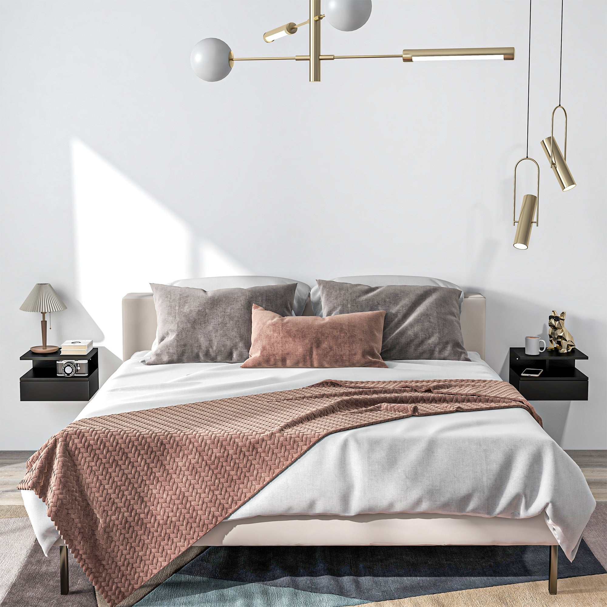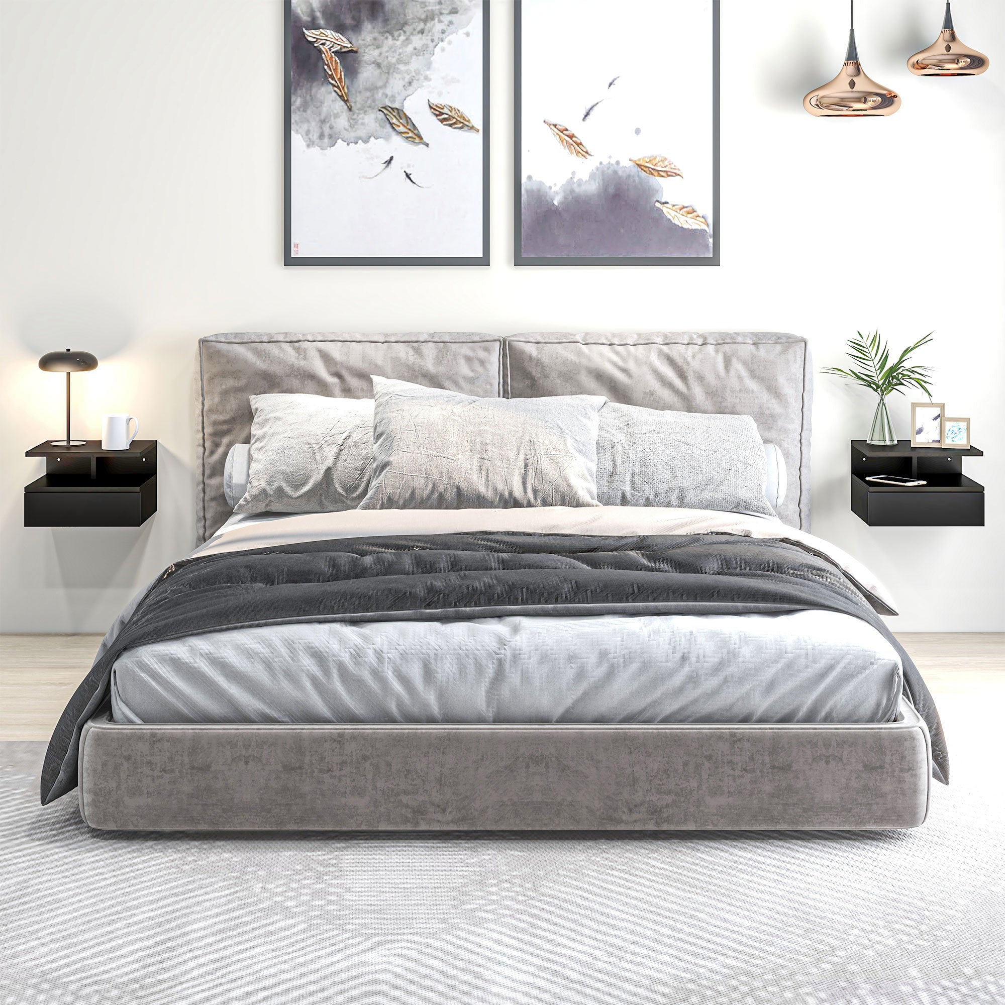 Comfort and design: Bring a modern and streamlined touch to your bedroom with this set of wall-mounted bedside tables. Their floating design frees up floor space and creates a light and contemporary feel, ideal for modern bedrooms.