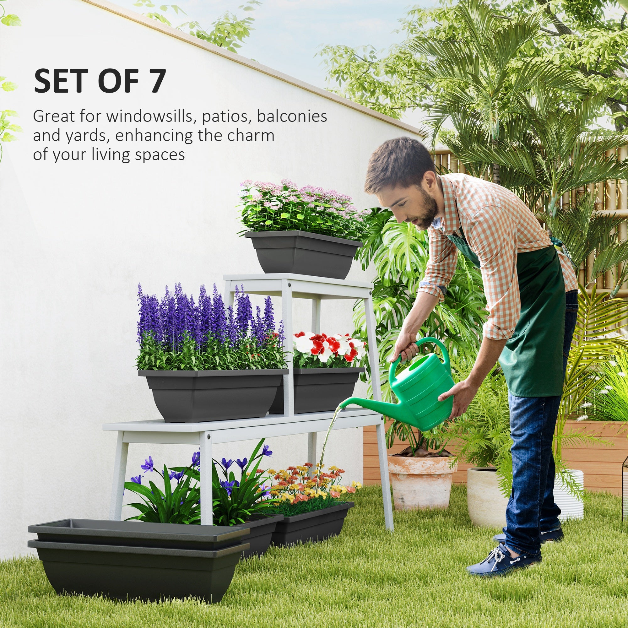 Transform your outdoor spaces with the [BRAND NAME] Outdoor Planters! This set of 7 planters features a classic black color and a simple design that blends effortlessly with any decor. Their stackable feature saves space, while the PP material ensures long-lasting appeal. Great for windowsills, patios, balconies, and yards, these outdoor flower pots enhance the charm of your green spaces.