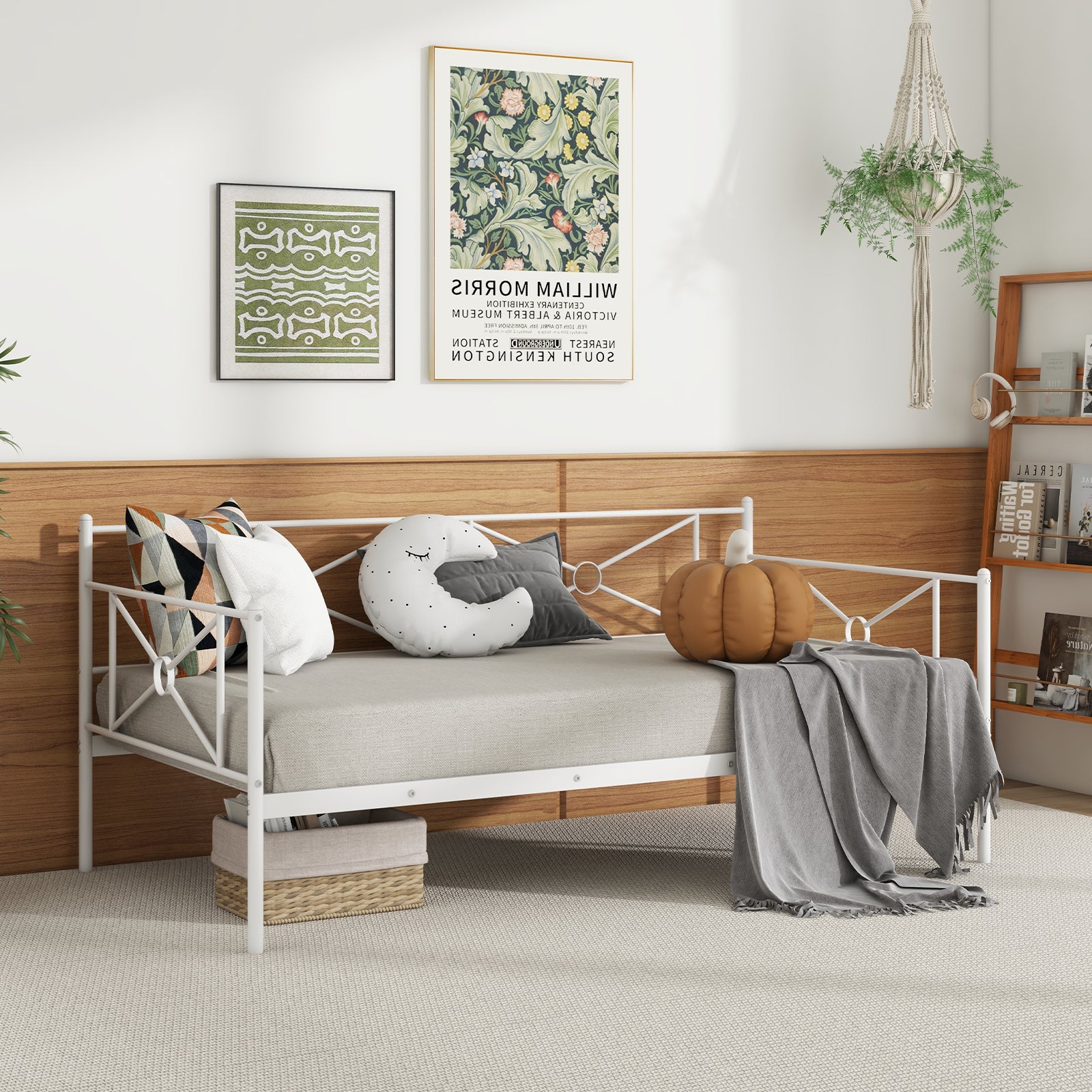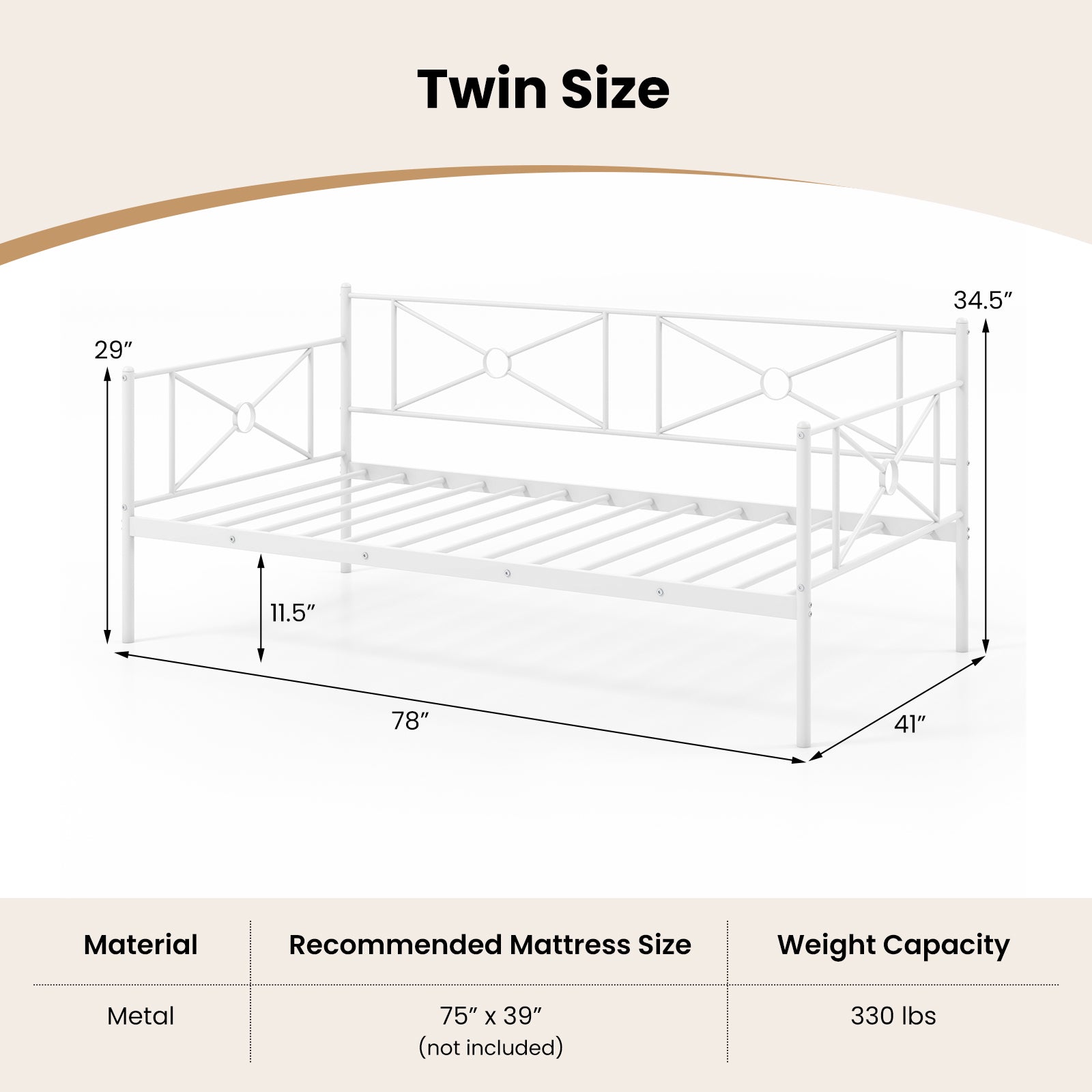 Comfort and design: This metal daybed impresses with its contemporary, classically inspired design, featuring an elegant headboard and footboard that blend seamlessly into various interior styles. Usable as a bed or a sofa, it provides a practical and stylish solution for multi-purpose spaces such as a bedroom, dorm room, or children's room.