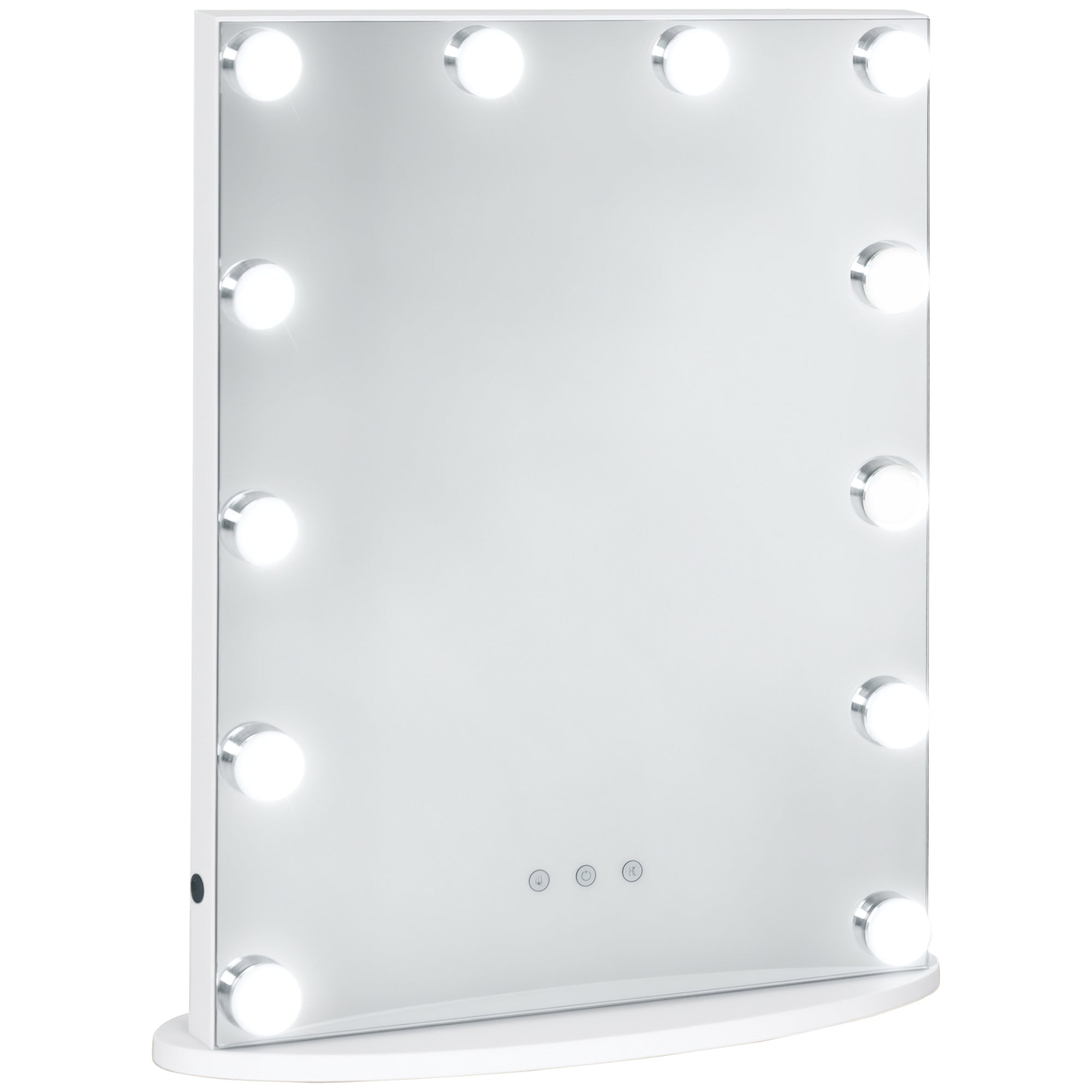 Tailor-made glow: This sleek vanity mirror features 12 bright LED bulbs with three hues of light—warm white, neutral white, and cool white—for a perfect look any time of day.