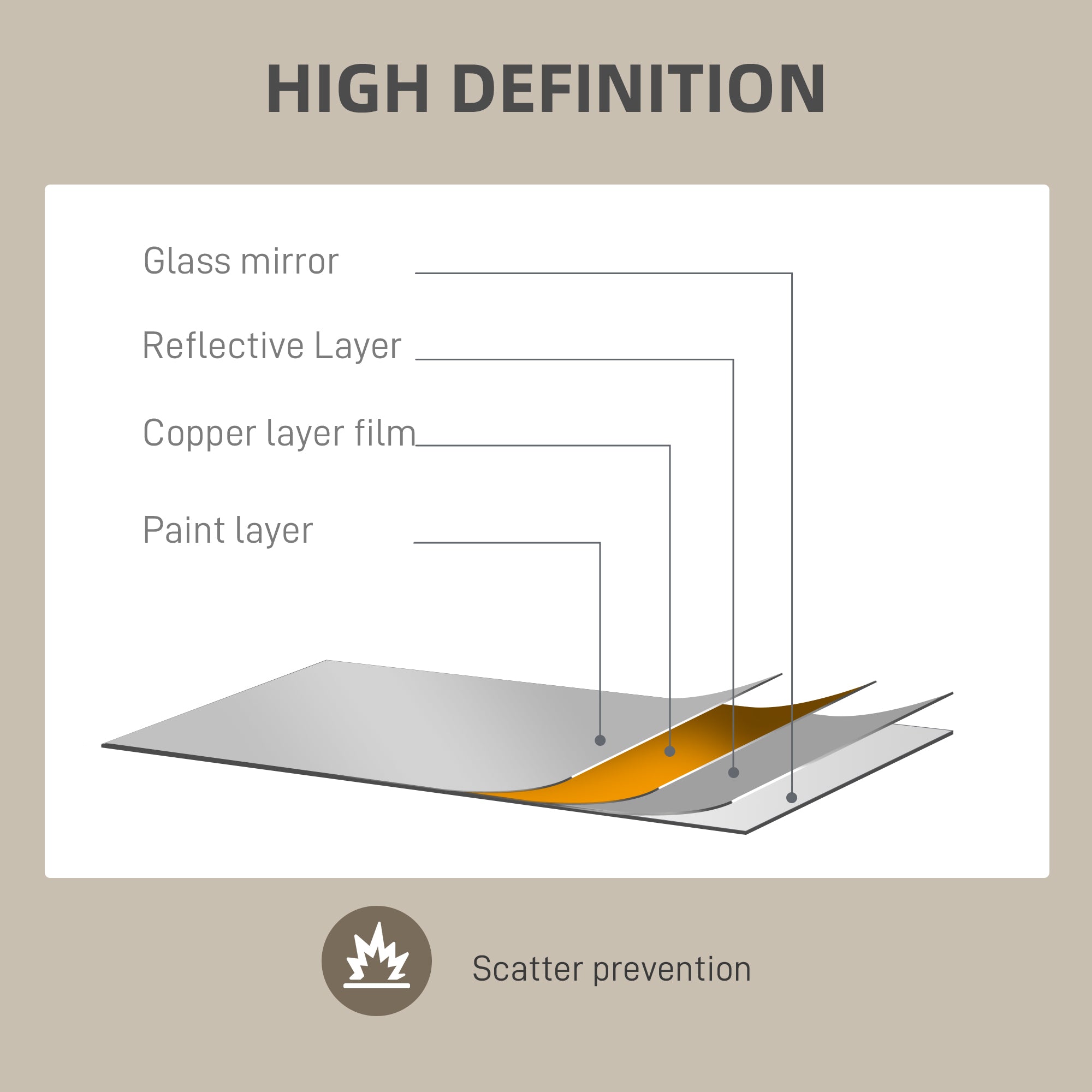 Quality and durability: Designed with thick, multi-coated glass, this mirror offers a clear, distortion-free image. Its solid steel structure guarantees excellent wear resistance, without the risk of explosion or oxidation.
