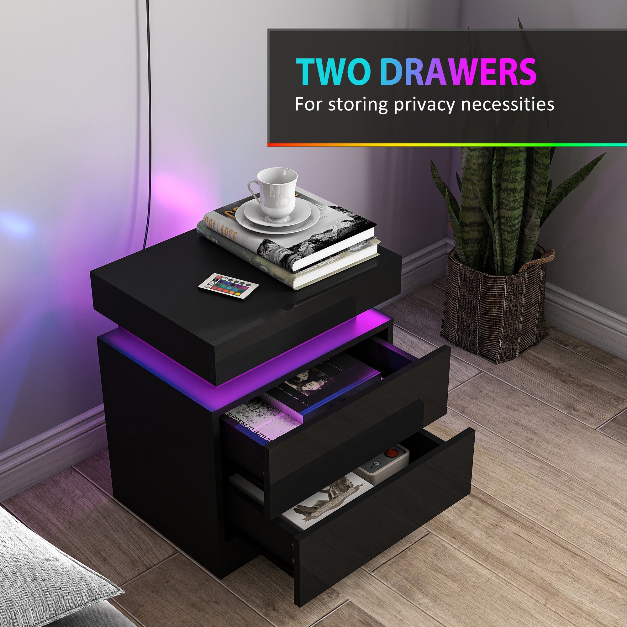 Ideal as bedside tables, side tables next to the sofa or small storage units for tight spaces, these tables offer customizable lighting with over 60,000 colors, music and flashing modes, as well as brightness adjustment and a timer, all controllable via switch or Bluetooth app.