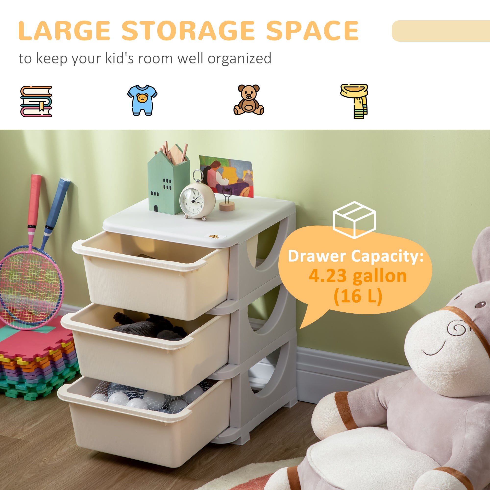 Easy for little ones to use: The lightweight drawers pull out completely, allowing children to easily search and put away their things. This design encourages their independence and makes tidying up a simple and fun activity.