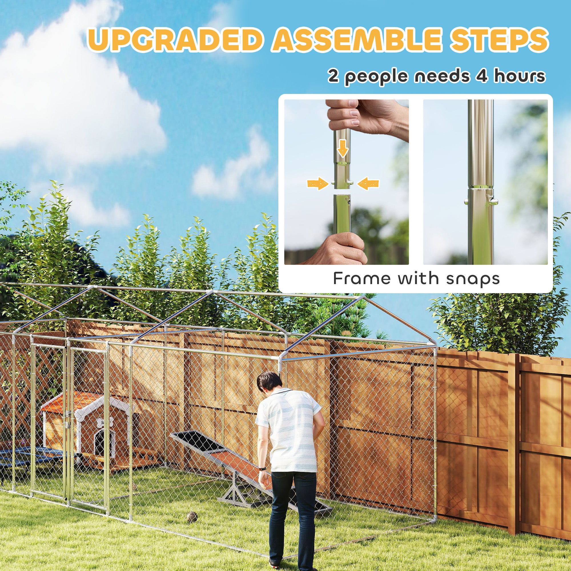 Discover the [BRAND NAME] Outdoor Dog Kennel, a spacious two-room dog run designed to provide personal space for each pooch. Crafted with 1.3" (3.2 cm) galvanized metal and thick steel wire mesh, this outdoor dog kennel ensures safety with its escape-proof lock. Plus, the 420D cover offers shade and UV protection, making it a cozy haven for your furry friend.