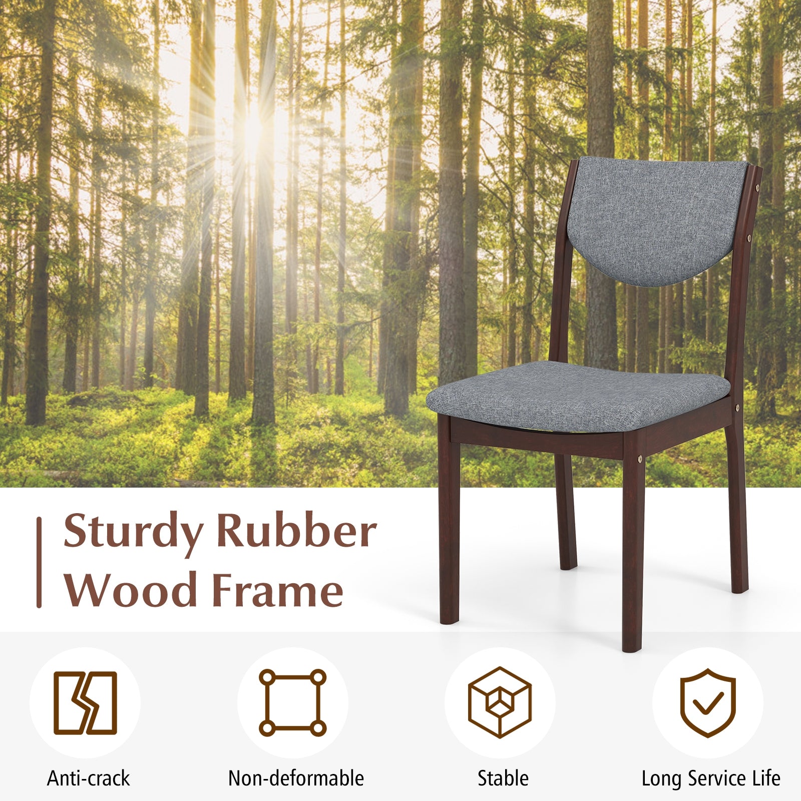 Made from natural, warp-resistant rubberwood, these chairs offer a sturdy and durable structure. The seat is padded with high-density foam and covered in waterproof PU leather, which is soft on the skin and easy to clean, ensuring lasting comfort.