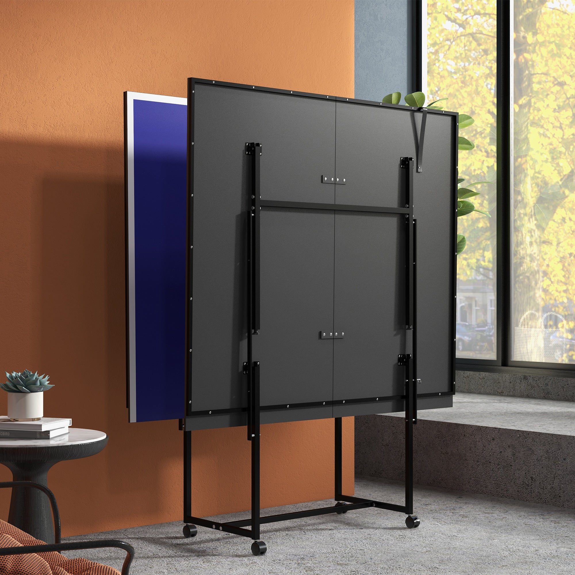 Comfort and Design: Enjoy exciting games with friends or family with this full-size ping-pong table. Its sleek blue finish and sturdy steel frame provide a stable, even playing surface, perfect for both amateur and professional players.