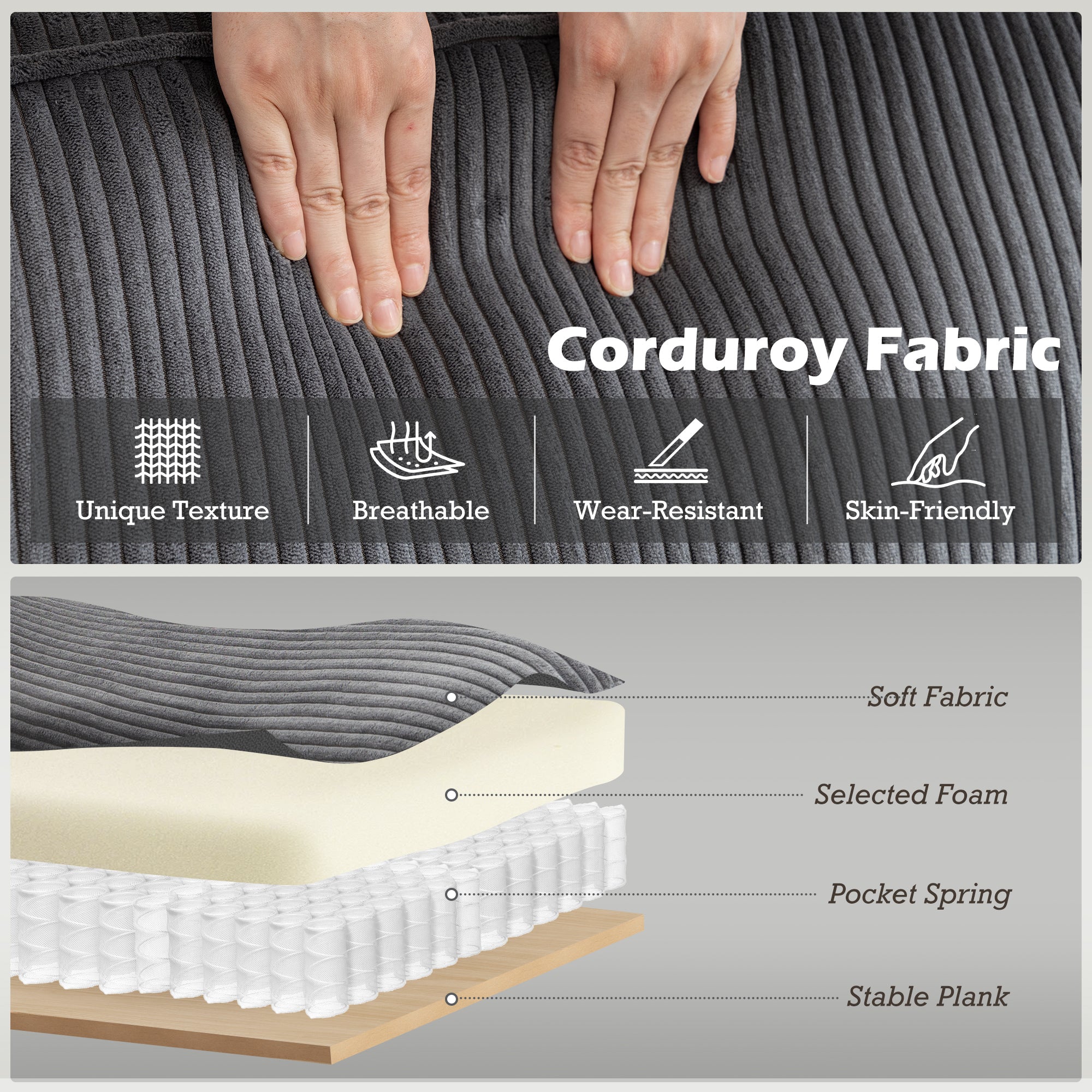 Comfort and design: This 3-seater sofa in corduroy fabric combines elegance and softness to create a warm and inviting relaxation space. Its breathable upholstery and modern design enhance your living room, bedroom, or office while providing lasting comfort.