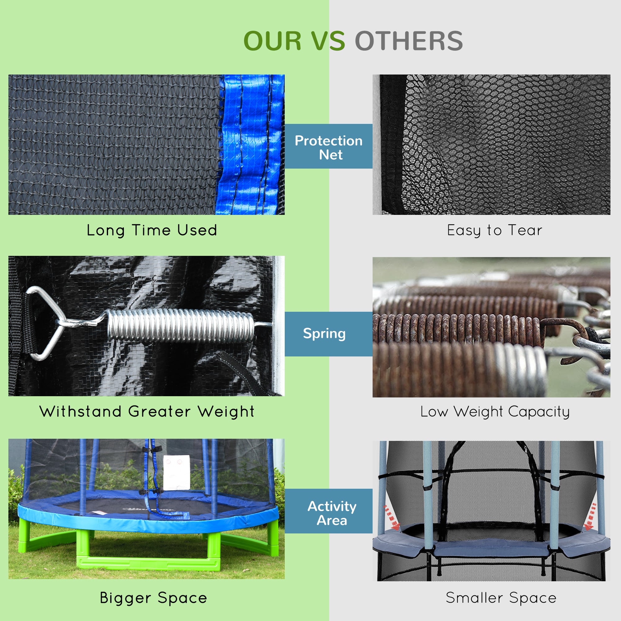 Optimal Safety: Its fully enclosed safety net prevents accidental falls, while the zipper makes entry and exit easy. The sturdy steel frame and strong springs ensure maximum stability for jumping with confidence.