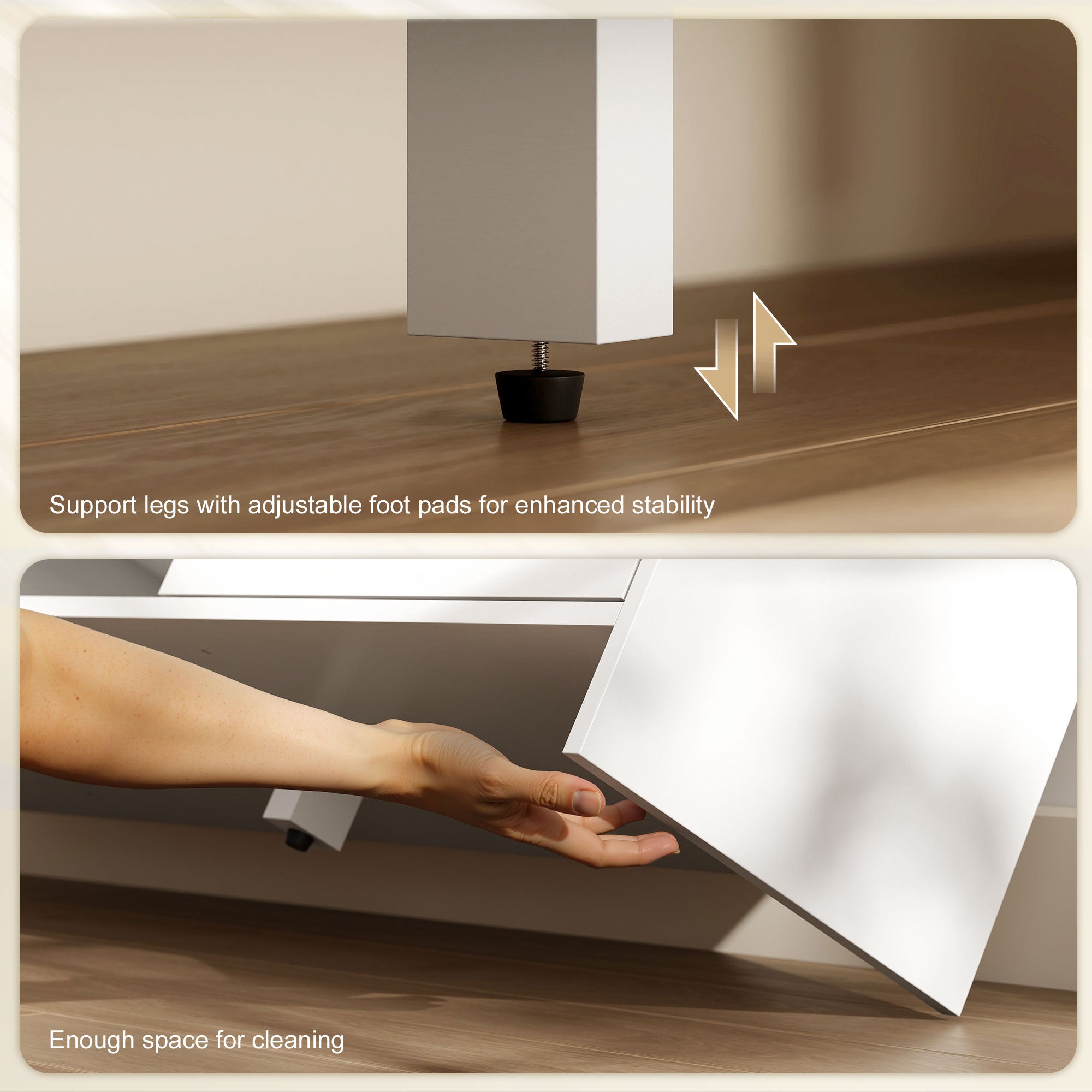 Versatile use: Designed to accommodate a TV up to 65 inches, it offers ample storage space with two closed cabinets and two open shelves. Its three-tier adjustable shelf allows you to customize the space for your consoles, media players, or accessories, keeping your living room neat and organized.