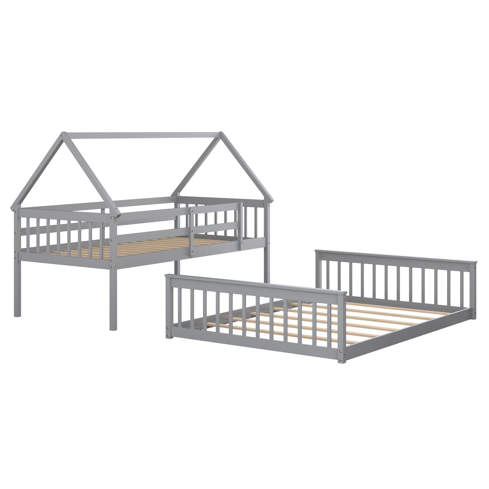 Versatile use: Designed to maximize space in shared bedrooms, this bunk bed can also be separated into two independent beds as needed. It's ideal for children's rooms, dormitories, or apartments and can accommodate a single mattress on top and a double mattress on the bottom.
