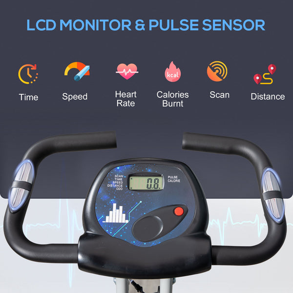 - LCD display shows time, speed, distance, calories, total mileage and heart rate