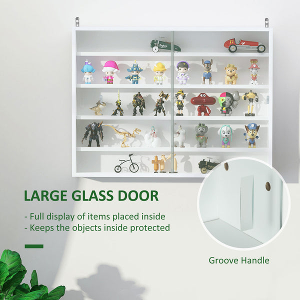 Quality and safety: Made from sturdy particleboard and clear glass, this display case combines strength and aesthetics. Easy to assemble, it mounts securely to the wall for a stable, durable, and elegant result.