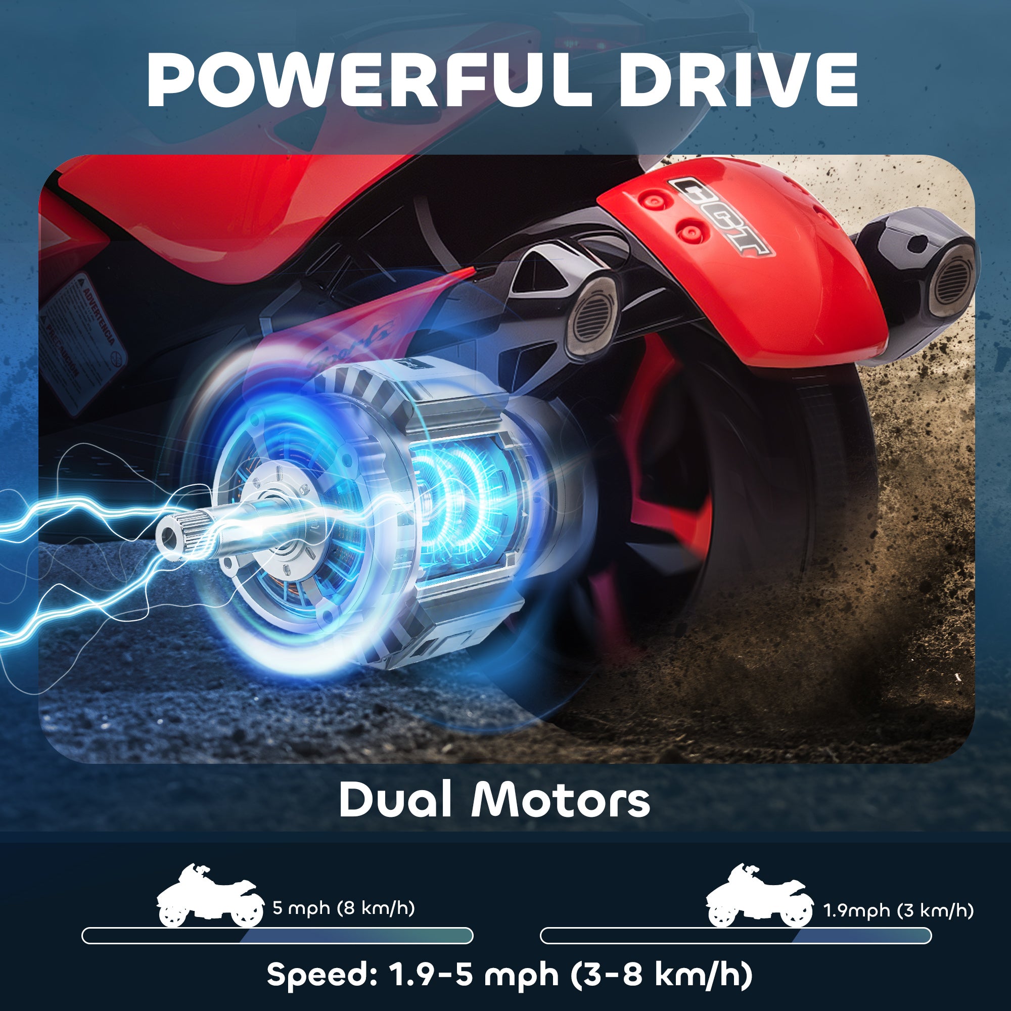 Red electric quad for children - 12 V with LED headlights, music and safe driving